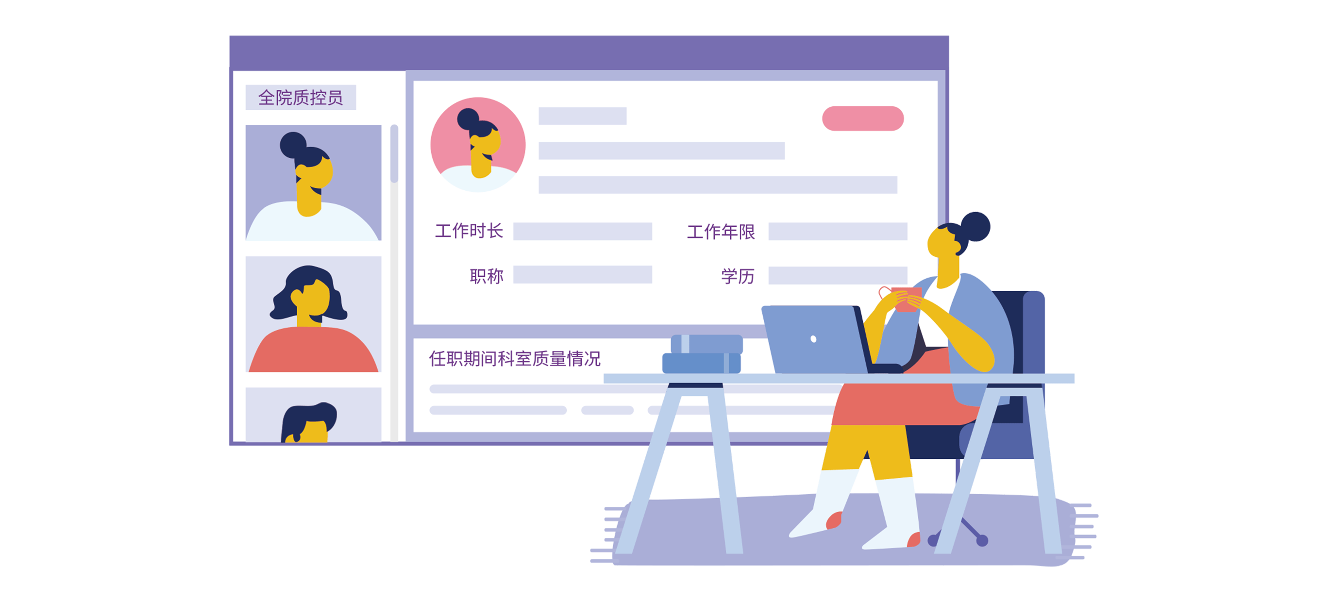 - 科室质控员的能力关系到科室质量水平的高低,通过系统可实现对全院各科室质控员进行统一管理,全面掌握各科室质控员的工作年限、质控工作时长、学历、职称、以及任职期间的科室质量情况,有效臻选合格的科室质控员,为科室、为医院的质量安全管理当好第一位守门员、把好第一道关,促进医院的计划推进和目标达现。