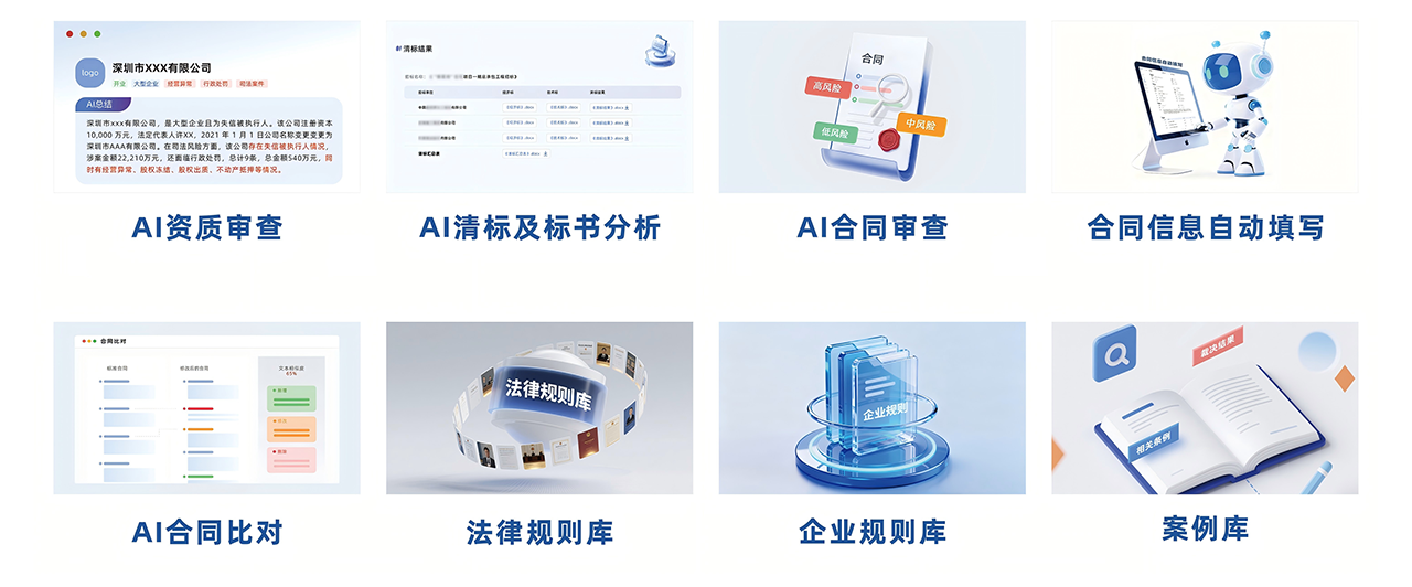 - 全方位扫描法律、财务、业务内控风险,精准识别合同盲区;内置成熟的行业规则与案例库,开箱即用,极大降低实施门槛与周期。