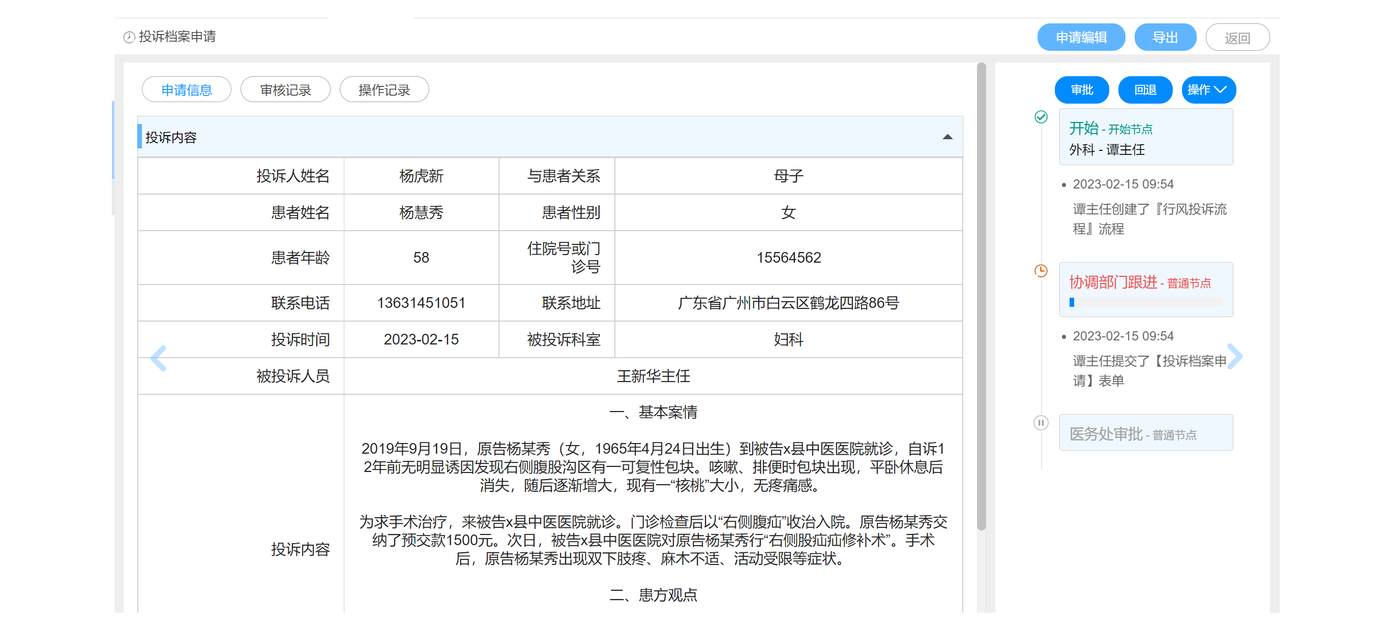 - 记录患者的行风投诉,文字、图像、语音、录像等,转发相关部门,跟踪处理过程和处理结果,形成投诉档案。