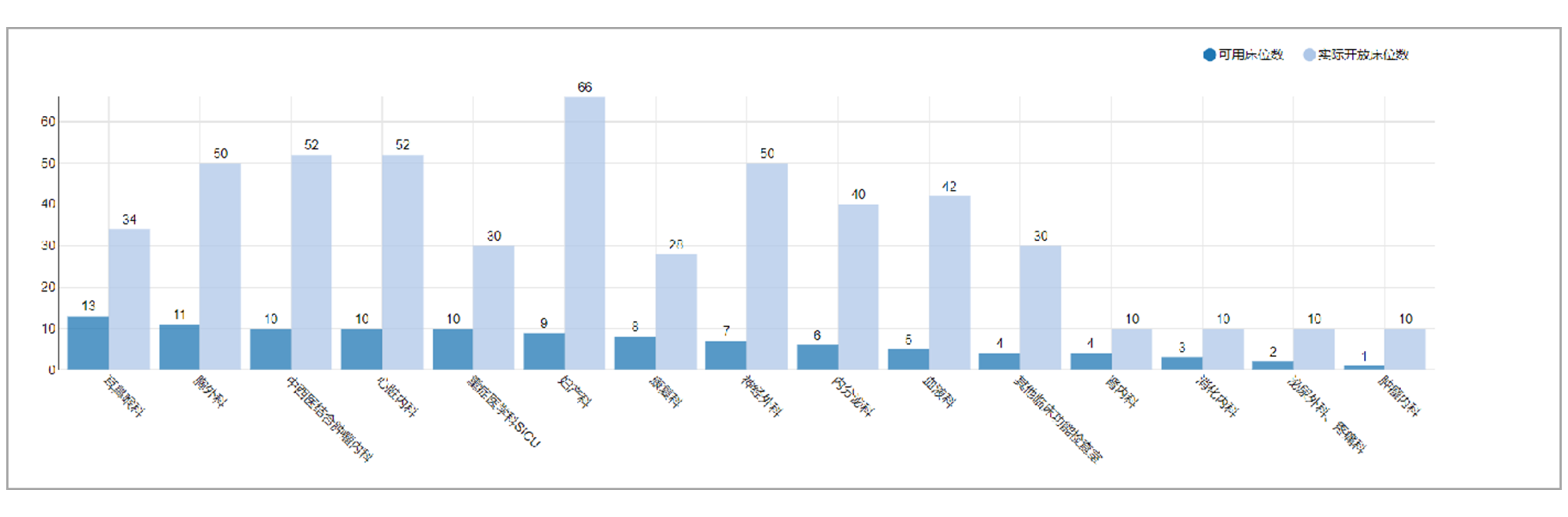 - 实际开放床位数(按部门)、可用床位数(按部门和床位状态)
